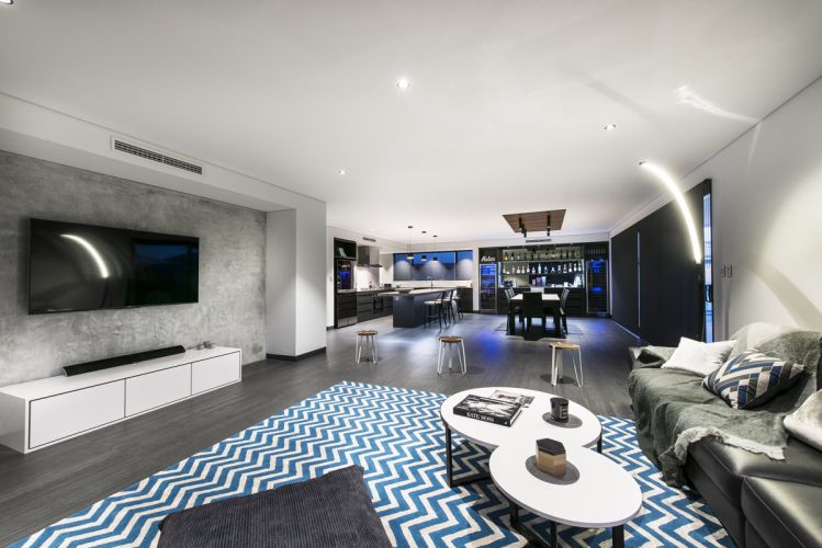 Para resaltar los interiores de Villa Carine de Perth, en Australia, se ha elegido una cerámica con efecto cemento de Italgraniti Group. La colección elegida ha sido Italgraniti Materia D, en color fumo y acabado tecno, matérica y versátil.
