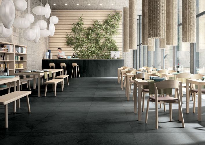 Stone Plan a une âme technologique en grès cérame, le matériau le plus fiable pour le secteur commercial et pour le logement.