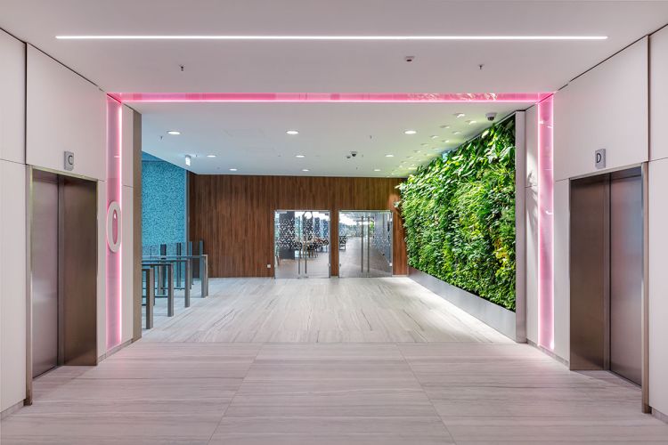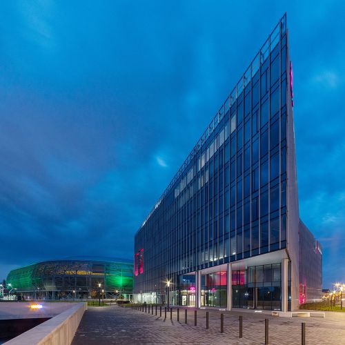 La nuova sede Telekom, situata all’interno del IX distretto della città ungherese di Budapest, in posizione strategica tra l’aeroporto e il centro città, rappresenta il più grande progetto ad uso uffici realizzato in un unico blocco di costruzione, si estende su una superficie di circa 55.000 mq ospitando più di 4.000 dipendenti di Telekom e T-System, le due società del gruppo.