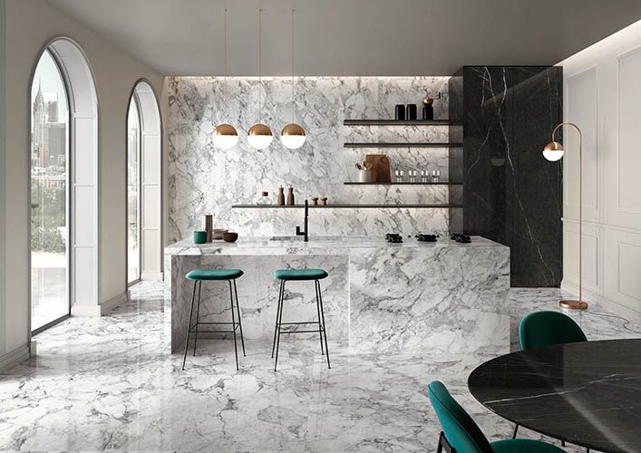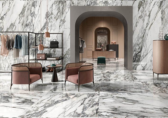 Le superfici monumentali riflettono la complessità policroma, la continuità grafica tra le lastre e l’equilibrio d’insieme. Attraverso le grandi lastre esprimiamo al meglio la cura del dettaglio e un incredibile realismo. I Marmi di Impronta rivestono l’architettura degli interni generando rigorosa continuità estetica. Per questo le nostre superfici possono risolvere progetti tailor-made, perché la coordinazione dello spazio è un valore irrinunciabile. I nostri progetti seguono le rivoluzioni estetiche in continuo mutamento.
