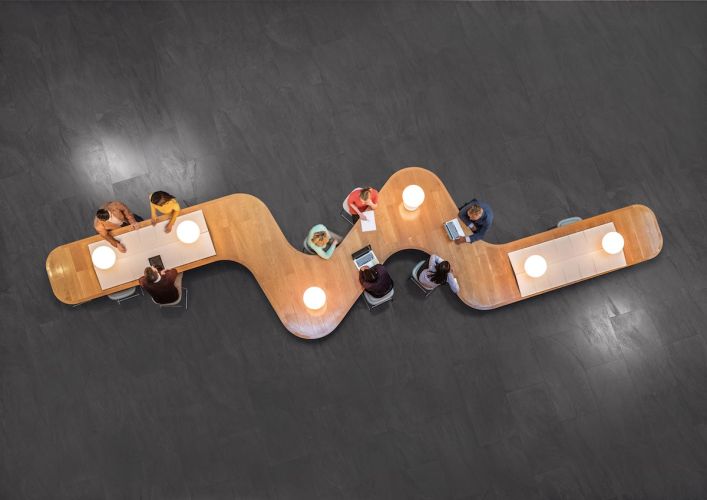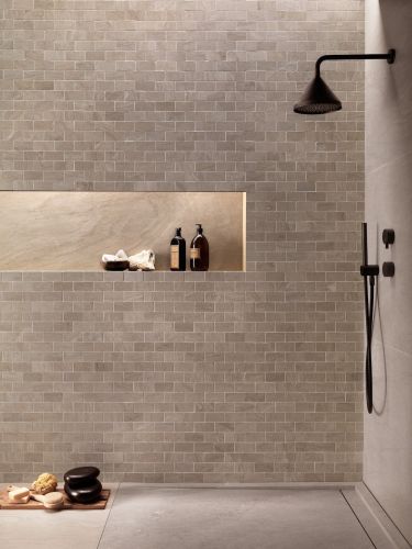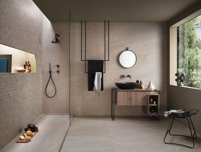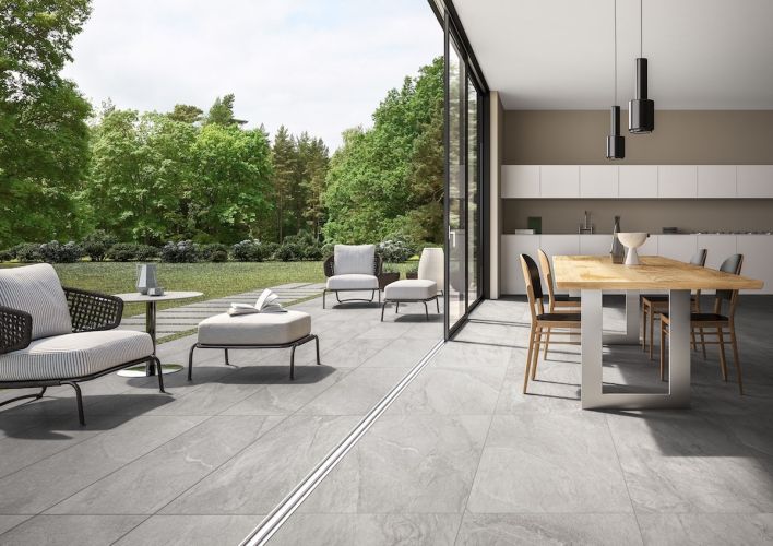 La collezione Up_Stone in gres porcellanato effetto pietra è ricca di nuances, sfumature e venature così da rispettare e replicare il naturale equilibro della pietra Beola per la pavimentazione di esterni ed interni.