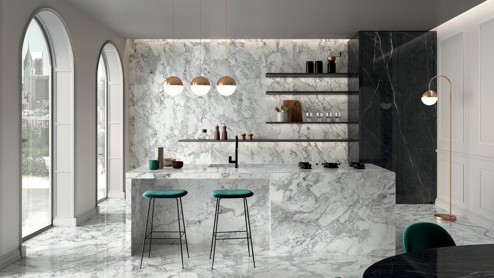 Le superfici monumentali riflettono la complessità policroma, la continuità grafica tra le lastre e l’equilibrio d’insieme. Attraverso le grandi lastre esprimiamo al meglio la cura del dettaglio e un incredibile realismo.