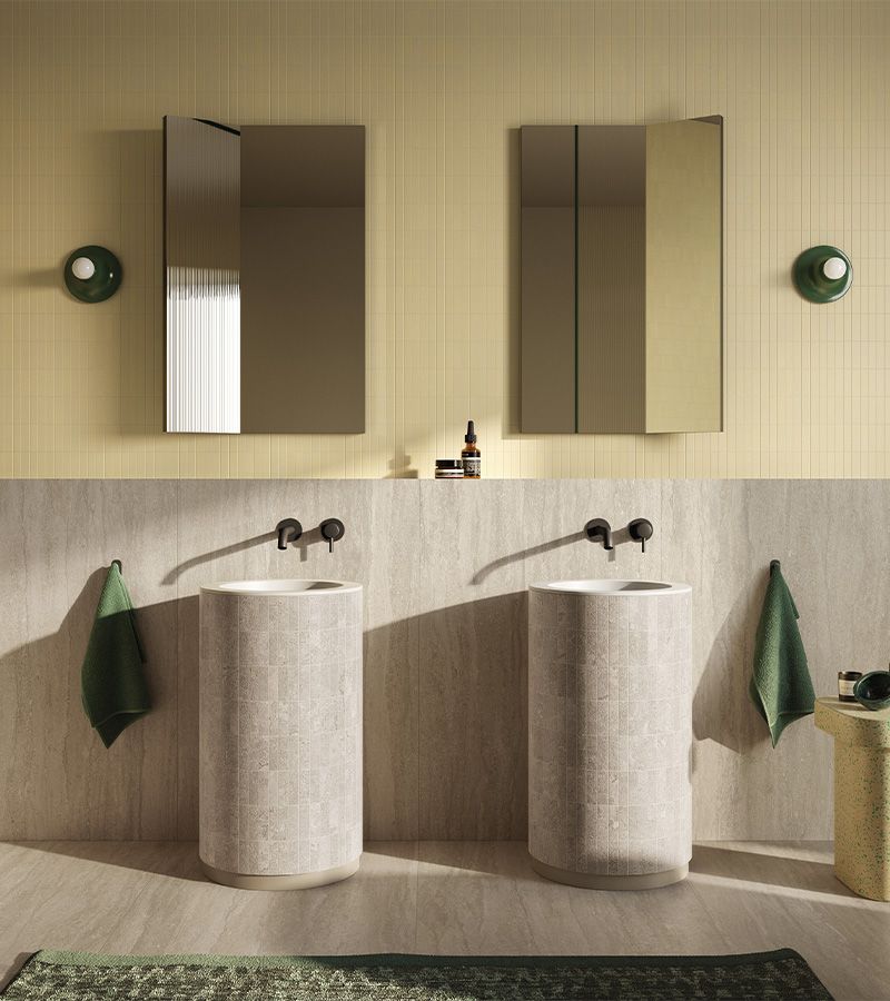 La modernità senza tempo del travertino e la sua armoniosa eleganza si esprimono in una collezione estremamente versatile anche per le cromie, che spaziano dai toni freddi alle nuance più calde e avvolgenti.